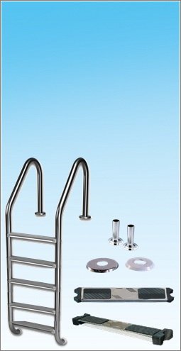 Kaliteden ödün vermeden her türlü ihtiyaca hitap edecek şekilde üretilmiş havuz merdivenleri, 304 ve 316 kalite kromdan mamül standart model merdiven, muro model merdiven, kombine model paslanmaz çelik basamaklı ve eğimli iniş merdivenleri, can kurtaran simidi, cankurtan kancası ile havuz kullanımını güvenli hale getiriyoruz.